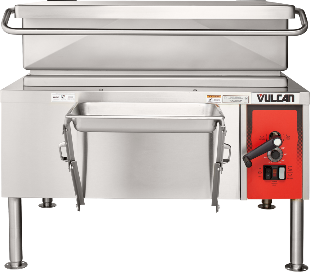 A successful chef knows that one day they might have to cook at an event serving hundreds and hundreds of people. Using multiple stock pans might sound like a good idea, however not only will it be time consuming, but it might also leave the kitchen in a mess. It's always good to be prepared and to avoid a mess catastrophic mess, so a chef's best bet is to buy a braising pan and tilt skillet. The best place to buy one is right here at Jean's Restaurant Supply. We will provide you with the right braising pan to fit your needs, and one of your choices is the Vulcan VE40-33.