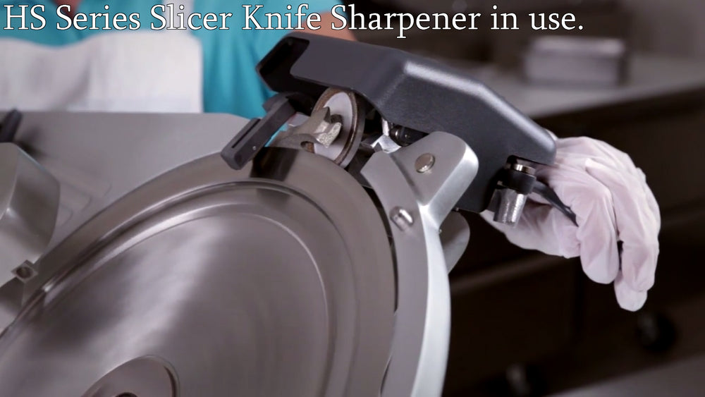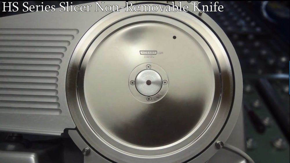 The Hobart HS7N-1 has a 1/2 hp knife drive motor with an electroless nickle plated single rod for smooth operation and continuous lubrication. The gauge plate remains closed during operation of the sharpener. The 13" clean cut knife has a super alloy edge that stays sharp for longer periods. It lasts two to three times longer than than a carbon coated or stainless-steel knives. The machined grooves on the gauge plate and knife cover, reduces drag for a smoother slicing motion. Slice thickness can be determined by an adjustable knob to a maximum of 1". it can slice foods up to 12" by 7-1/2". Then, when you find the knives are getting a little dull this unit has a built-in sharpener. The single-action, top mounted borazon stone sharpener sharpens and hones in just 15 seconds.
