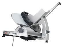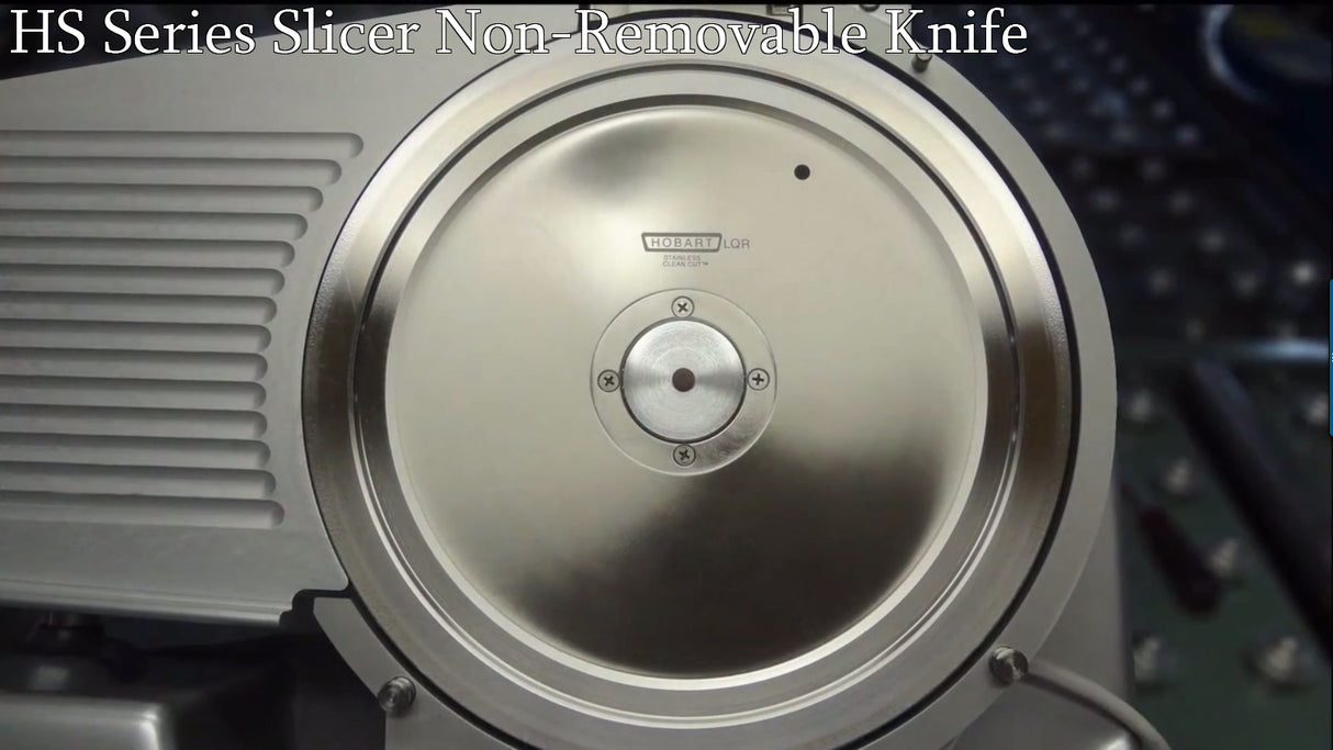The Hobart HS8N-HV60C has a 1/2 hp knife drive motor with an electroless nickle plated single rod for smooth operation and continuous lubrication. The gauge plate remains closed during operation of the sharpener. The 13" clean cut knife has a super alloy edge that stays sharp for longer periods. It lasts two to three times longer than than a carbon coated or stainless-steel knives. The machined grooves on the gauge plate and knife cover, reduces drag for a smoother slicing motion. Slice thickness can be determined by an adjustable knob to a maximum of 1". it can slice foods up to 12" by 7-1/2". Then, when you find the knives are getting a little dull this unit has a built-in sharpener. The single-action, top mounted borazon stone sharpener sharpens and hones in just 15 seconds.