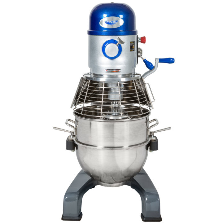 The Vollrath® 40-quart floor mixer is built tough, promising years of reliability and durability. It features a 3-speed belt drive, allowing you to mix a variety of products at the appropriate speed. The 30-minute timer automatically turns the mixer off for ultimate convenience. This mixer comes with all the accessories required for operation, as well as a safety guard to prevent accidental injury. Strong legs maintain stability while black feet prevent movement during use. If you want to expand your mixer’s versatility to include grinding and slicing, a No. 12 hub can accommodate the appropriate Vollrath attachments.