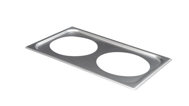 Designed for food bars and buffet lines that use inset pans, the Vollrath 19192 adapter plate improves the countertop's appearance and reduces messes. The plate is made of stainless steel, so it resists scratches and streamlines the cleaning process. It can hold two 8.37 inch insets.