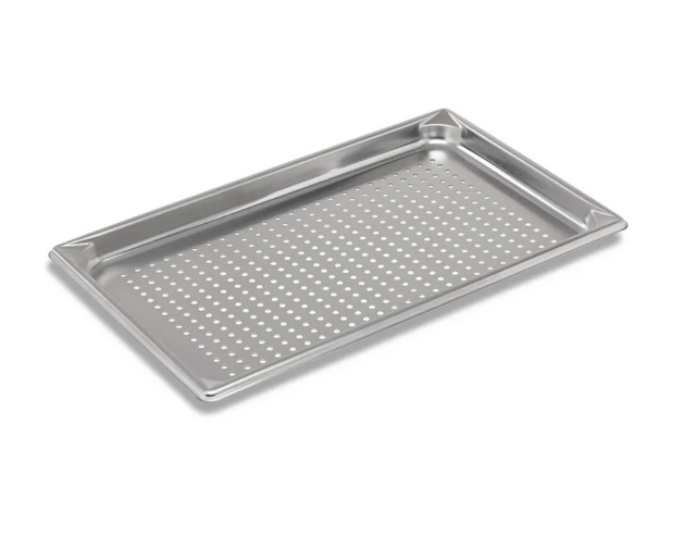 This pan is ideal for steaming foods or draining away fats, juices, or moisture in your restaurant, cafeteria, dining hall, catering business, or other foodservice establishments.