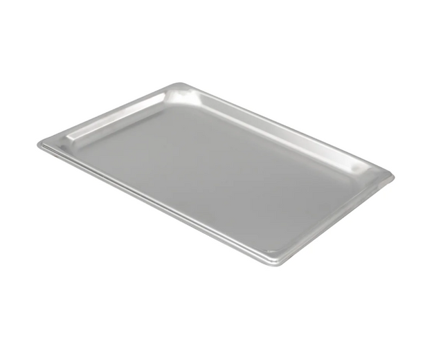 Measuring only 3⁄4 of an inch deep, the Vollrath 30202 Super Pan V® half-size steam pan can be used as a display tray. The bright finish and smooth curves improve product presentation. Constructed of corrosion-resistant stainless steel, the pan is durable and simple to clean.
