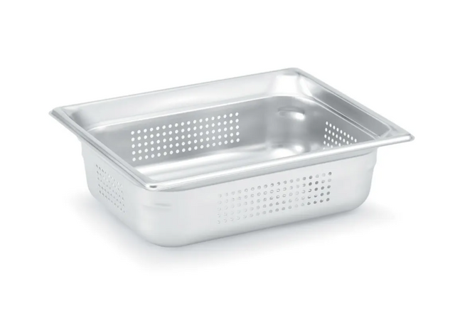 When you need to steam vegetables or meats, wash greens, or drain seafood, this perforated full size food pan is a great choice. Helps drain fats and other moisture for a fresher tasting product. Wide edges provide grip for handling the pan.