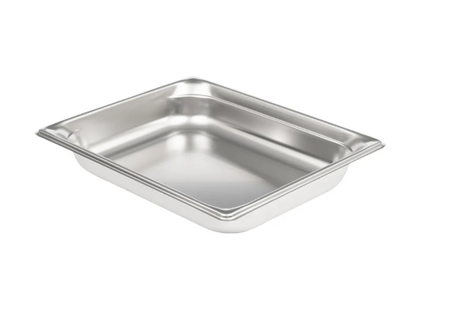 The Vollrath 90252 Super Pan 3™ half-size steam pan can accommodate 3.5 quarts of food and has a 2-inch depth. With an integral frame, the pan enhances product presentation in steam tables. Users can easily pour food from the pan since it has spout-shaped corners. Made of stainless steel, the pan is durable and rust resistant. To save space, the pan can be stacked with others without jamming.