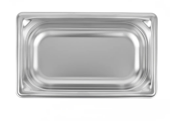 The Vollrath 90452 Super Pan 3® fourth-size steam pan has a 1.6-quart capacity and 2-inch depth. Measuring 6.375 inches long by 10.4375 inches wide, it works well in food bars for holding salad toppings and side dishes. To support heavy use, the pan has reinforced corners, and the spout-shaped design enables smooth pouring. The bend-resistant edges are flattened, so users can comfortably grip the pan while carrying it.