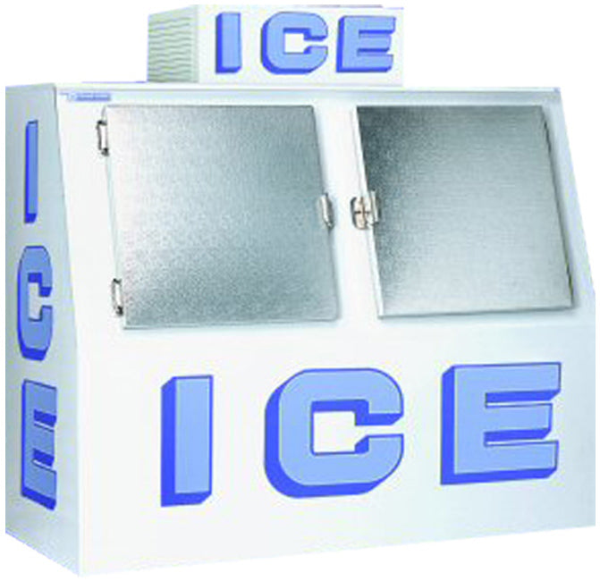 Ice Merchandiser, Outdoor, Auto Defrost, Slant Front, Upright, 72"W x 35"D x 72"H, (200) 8 lb. Bag Capacity, 60 cu. ft., (2) 27"W x 27"H Solid Swing Door, R404A Refrigerant, Temperature Range 10 - 20 Degree, 1/3 HP, 115v/60/1-ph, 12.08 Amps, cETLus