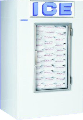 Ice Merchandiser, Outdoor, Auto Defrost, Slant Front, Upright, 48"W x 30"D x 79"H, (125) 8 lb. Bag Capacity, 42 cu. ft., (1) 26"W x 44"H Glass Swing Door, R404A Refrigerant, Temperature Range 10 - 20 Degree, 1/4 HP, 115v/60/1-ph, 15 Amps, cETLus