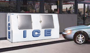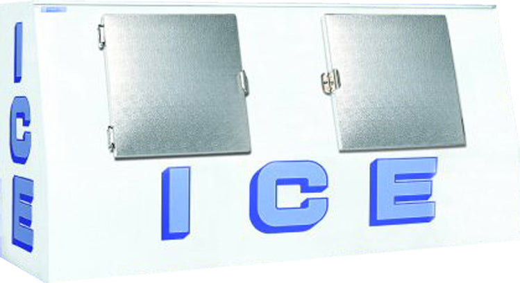 Ice Merchandiser, Outdoor, Auto Defrost, Slant Front, Low Profile, 96"W x 35"D x 49"H, (190) 8 lb. Bag Capacity, 60 cu. ft., (2) 27"W x 27"H Solid Swing Door, R404A Refrigerant, Temperature Range 10 - 20 Degree, 1/3 HP, 115v/60/1-ph, 15 Amps, cETLus