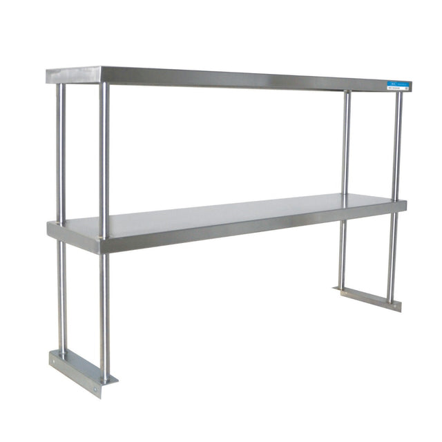 Double Overshelf, table mount, 60"W x 18"D x 31-1/4"H, 18/430 stainless steel, adjustable lower shelf, self tapping screws, shipped KD, NSF