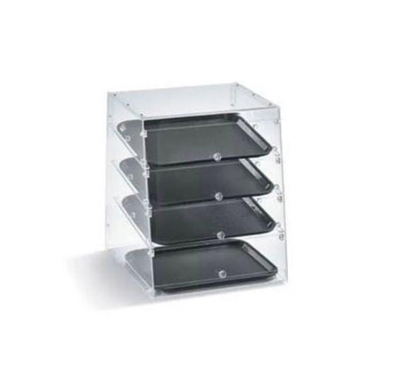 Display Case, counter top, slant front, full-service, non-refrigerated, 18-1/2"W x 19-5/8"D x 22-3/4"H, accommodates (4) 14" x 18" trays (included), split rear door, clear acrylic, rubber feet, KD