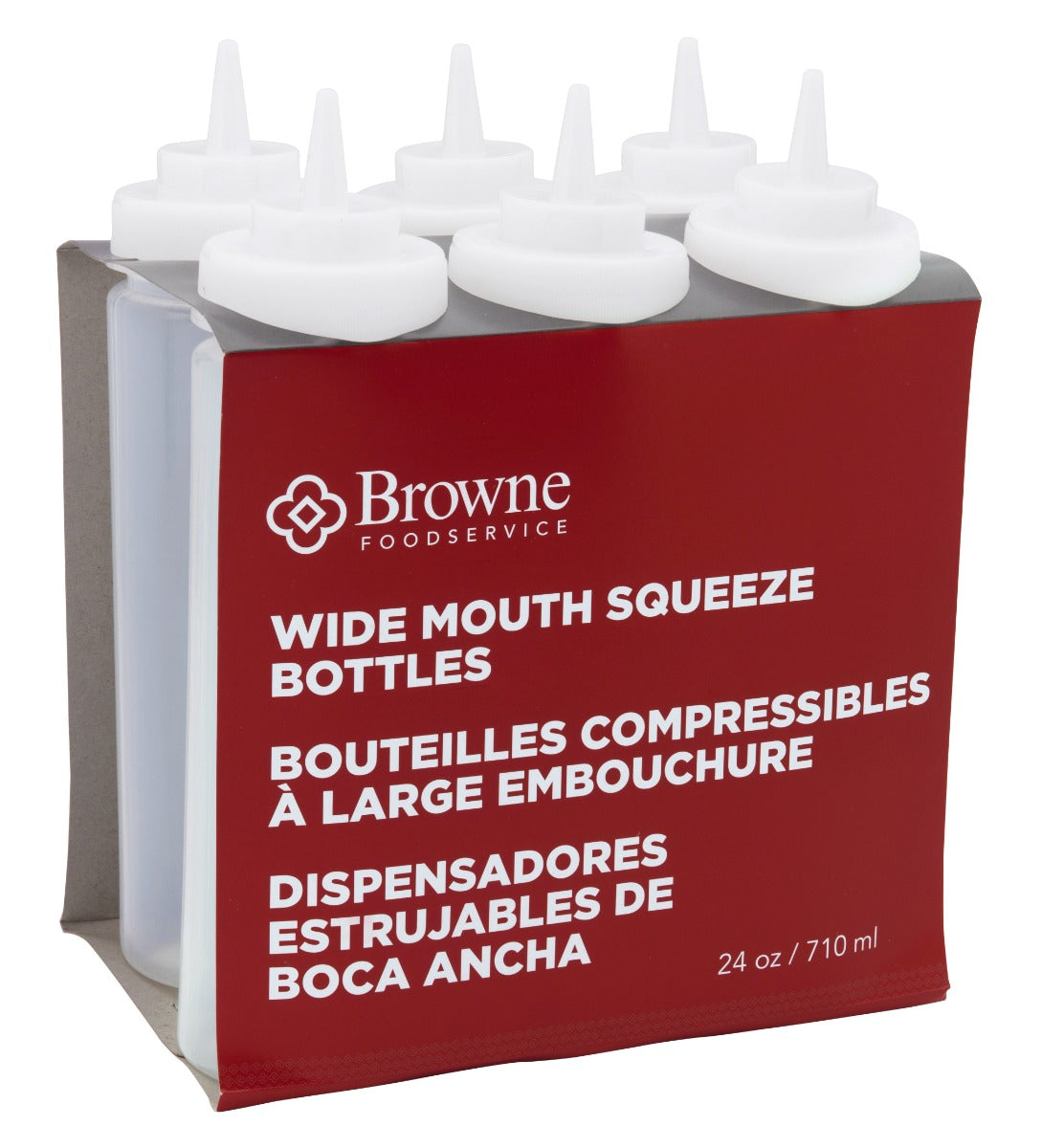 Browne 57802500 Wide Mouth Squeeze Bottle with No-Drip Tip 24 oz. - Clear - 6/Set