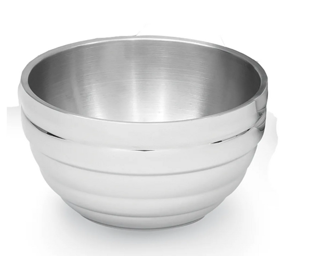 The Vollrath 46590 beehive insulated bowl holds 1.7 quarts of cold or hot food without losing the food's temperature. With its double-wall insulation, the bowl doesn't have to be preheated or chilled to retain serving temperatures, and it doesn't sweat when ice melts. Great for use in a buffet line, this bowl is made of durable stainless steel with an attractive mirror finish on its exterior, and it can be cleaned in the dishmachine after use.