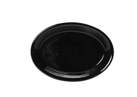 ProductsTuxton CBH-1352 13 1/2" x 9 3/4" Oval Concentrix®© Platter - Ceramic, Black - 6ea/Case
