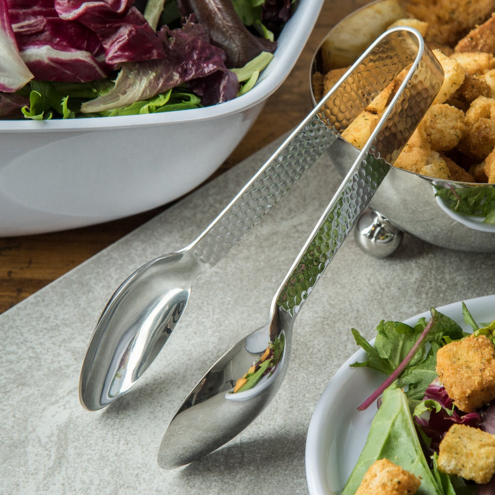 Terra Tongs, 7"L, dishwasher safe, stainless steel, hammered mirror finish