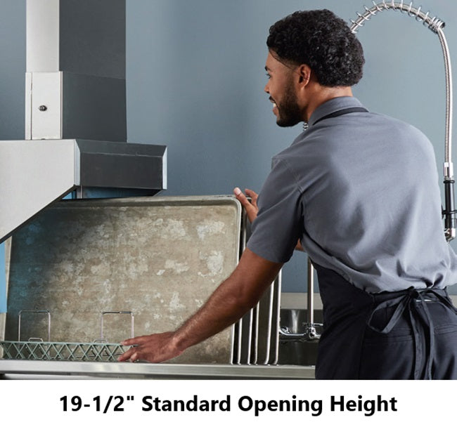 It features a deep-tank design that will require less refills, and this will save you in water, detergent and usage costs. It includes an auto-timer that will automatically shut off both the pumps and the convener after a rack exits the machine. It even features an exclusive Energy Saver mode that can be set to automatically shut off the entire machine after machine after anywhere from only one to as long as after six hours of inactivity.