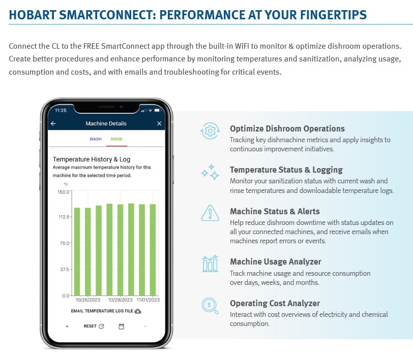 Every good kitchen needs an even better dishwasher, and a Hobart dishwasher is one of the best around. The Hobart CL44EN-BAS was designed to save you money. This unit features a single tank unit and can clean the astonishingly large amount of 202 racks per hour. Despite being so powerful, it will save you time and resources without causing you any unneeded trouble. All CLeN Dishwashers feature the most advanced technology in dishwashing that you can find today.