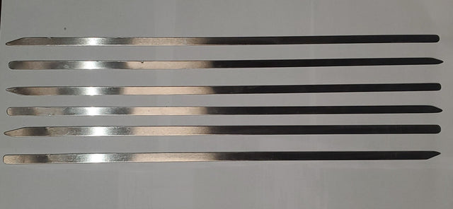 18 Gauge (1mm) thick all stainless steel Skewers. Great for Shish kebab, Bar B Q, and any grilled food!