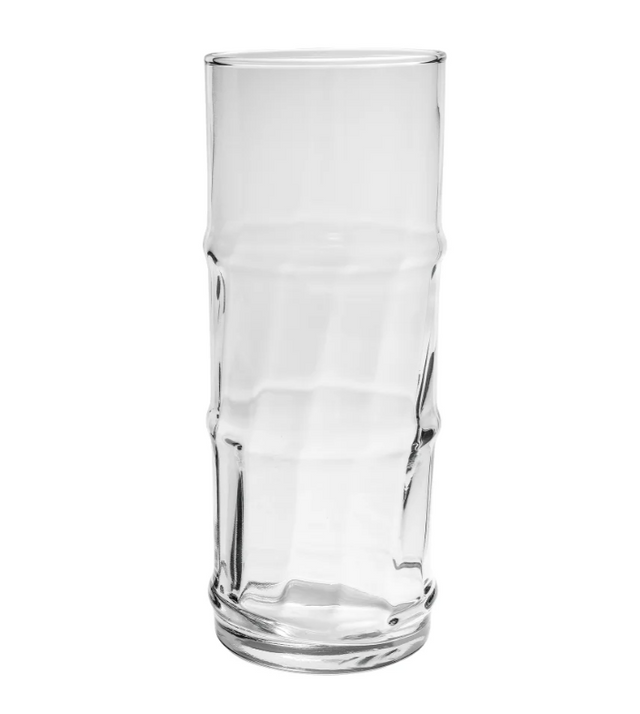 The Libbey 32802 hurricane glass holds a 16-ounce cocktail. Its unique layout resembles a stalk of bamboo, suiting this glass for serving drinks with tropical flavors. This clear glass construction enhances beverage presentation and staff can see when a customer's drink runs low so they can offer refills.