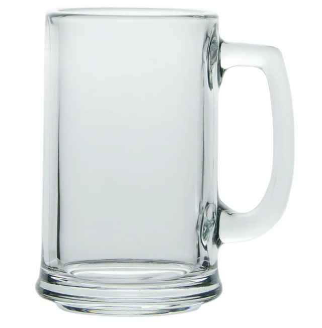 Constructed of glass, the Libbey 5011 mug is durable for heavy-duty use. It's built with thick walls and a heavy base to prevent wobbling and provide insulation for product inside. For use in bars and restaurants, it features a medium, 15-ounce capacity. The mug is clear to provide a view of its contents and fitted with a handle to facilitate lifting and drinking. Overall, it has a 41⁄2-inch maximum diameter and height of 51⁄2 inches.