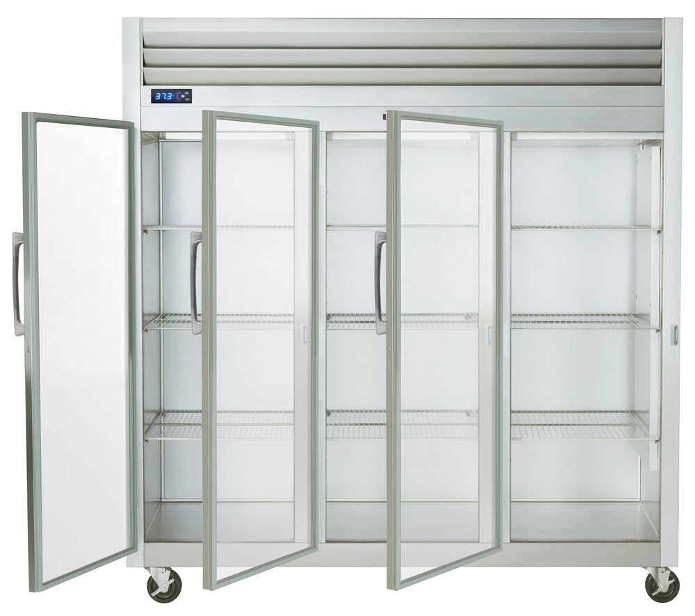 This unit is equipped with three sections of full height, vinyl magnetic, glass doors that are all left hinged and self-closing. The self-closing mechanism is extremely important. The last thing you need is for all of your refrigerated foods to spoil because the door was left open. This refrigerator was designed with the understanding of how hectic a busy kitchen can be. Accidentally leaving a door open will just be a terror of the past! These doors also have a stay open feature as well. If you push the door past an angle of 120 degrees the feature will activate. This is a particularly nifty characteristic, especially when you're trying to stock up.