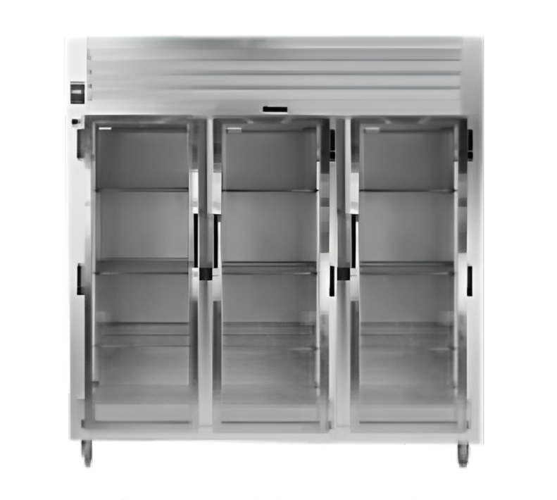 Spec-Line Refrigerator, Reach-in, three-section, 77.45 cu. ft., self-contained refrigeration, StayClear™ Condenser, stainless steel exterior and interior, standard depth, wide full-height door or doors with EZ-Clean Gaskets, (3) adjustable wire shelves per section, Smart Control™, 6" adjustable stainless steel legs, 3/4 HP, cETLus, ETL-Sanitation, ENERGY STAR®