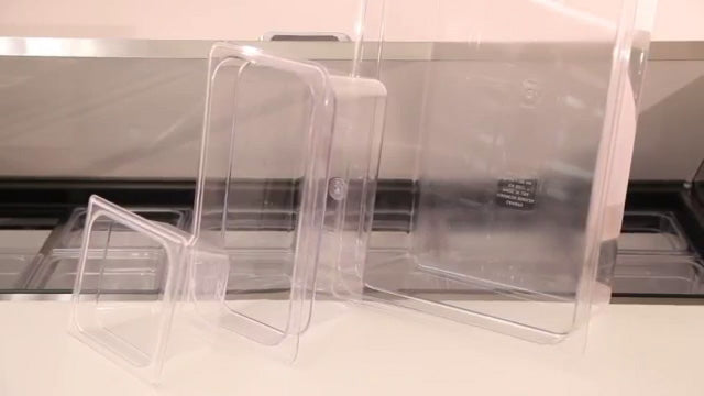 This fits 24 standard, clear poly-carbonate food pans in the counter-top prep area. The pan opening is designed to fit various sizes of pan configurations with pan divider bars, however, varying size pans are sold separately. In order to keep your food cold each food pan has a stainless-steel, patented, foamed insulated lid and hood to lock in freshness and minimize condensation. Another perk of this unit, is the full length, white polyethylene, removable cutting board.