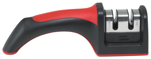 Kitchen Knife Sharpener, 7-5/8"L x 2-1/2"W, 2"H, 2-stage, manual, coarse carbide steel blades, ceramic honing rods, soft grip ergonomic handle